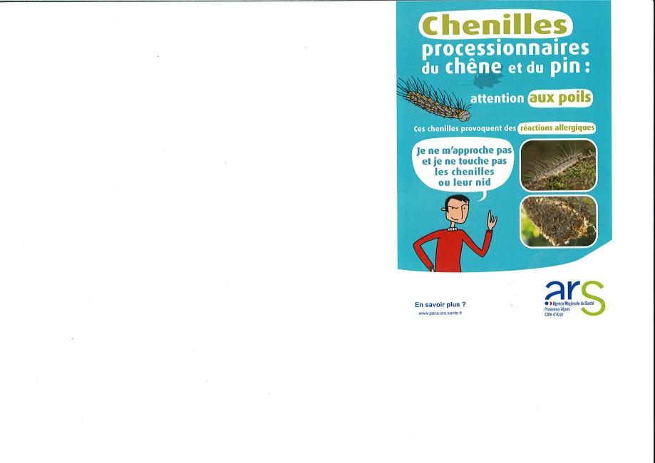 15 mars 2018 Veuillez trouver ci joint les recommandations de l'Agence Régionale de Santé pour les chenilles processionnaires du chêne et du pin. Documents Document Chenilles processionnaires du Chêne et du Pin Document recommandations ars PACA Infos pratiques Saint Apollinaire 04 92 44 22 33 Nous contacter A ne pas manquer Actualités Evénements