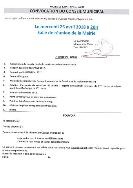 19 avril 2018 Documents Document convoc CM 25/04/2018 Infos pratiques Saint Apollinaire 04 92 44 22 33 Nous contacter A ne pas manquer Actualités Evénements