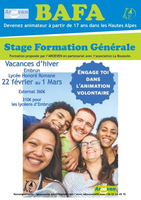 L'Aroeven Région Sud en collaboration avec La Boussole et le Lycée Honoré Romane à Embrun organise du 22 février au 1er mars une formation générale Bafa.